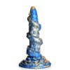 • Creature Cock Dildo: Blue and gold, it shimmers in the light. The twisted spiral that ascends to the tip of this dong adds extra sensation along with multiple, small suckers. At the base are tiny waves splashing against the rod.
