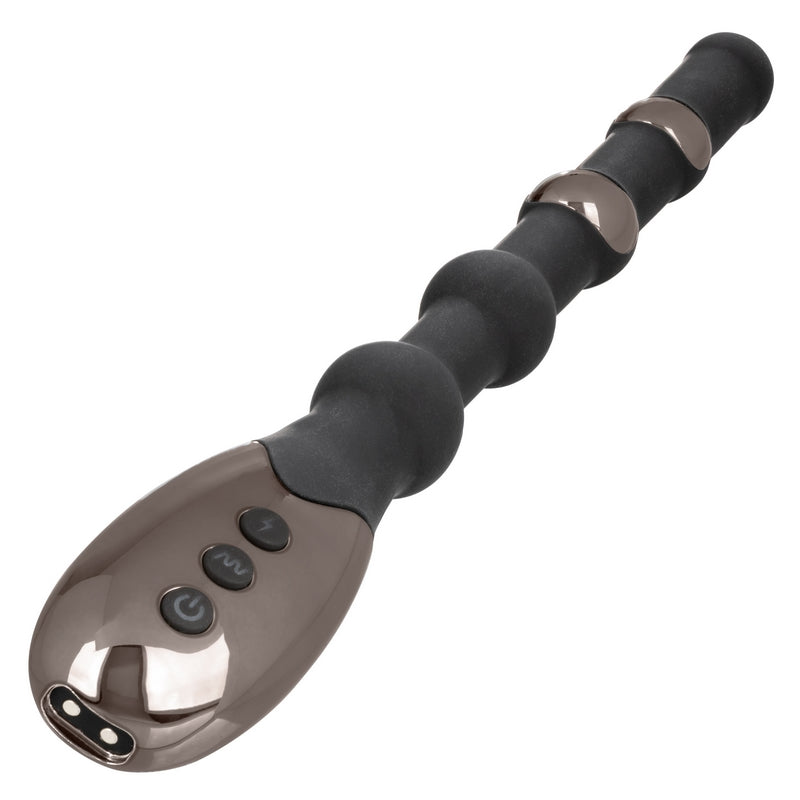 Electrify the senses with the thrilling Volt Electro-Beads. This uniquely flexible electro-stimulation beaded massager is packed with 5 independent functions of e-stim levels and 7 functions of vibration for electrifying pleasure. The slim and flexible wand can be bent into almost any position with a beaded design to deliver pulsating stimulation from any sensational angle.